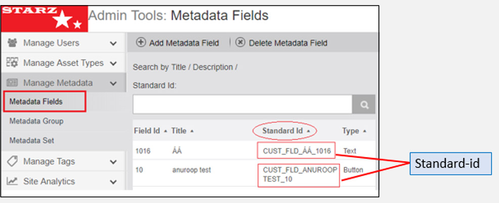Custom metadata details like: “standard-id="CUST_FLD_TST_LIST_595">VideoCategory1” “standard-id="CUST_FLD_TXT_DATETIME_598">02/03/2016” “standard-id="CUST_FLD_TXT_TIMECODE_599">00:00:25:50” “standard-id="CUST_FLD_TXT_FLOAT_597">29.97” will be associated with